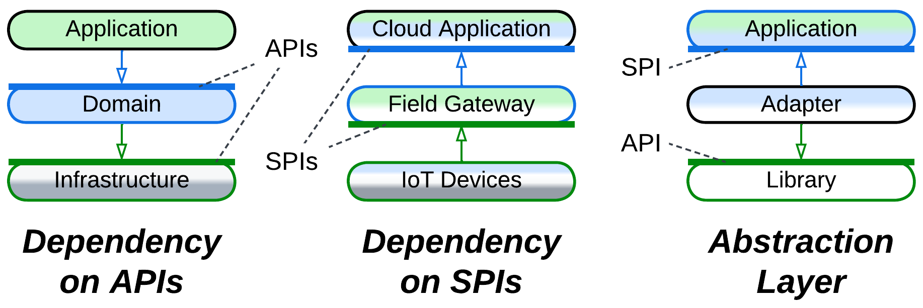 Some domains, including embedded systems and telecom, require their lower layers to be polymorphic as they deal with varied hardware or communication protocols. In that case an upper layer (e.g. OS kernel) defines a service provider interface (SPI) which is implemented by every variant of the lower layer (e.g. a device driver). That allows for a single implementation of the upper layer to be interoperable with any subclass of the lower layer. Such an approach enables Plugins, Microkernel, and Hexagonal Architecture.