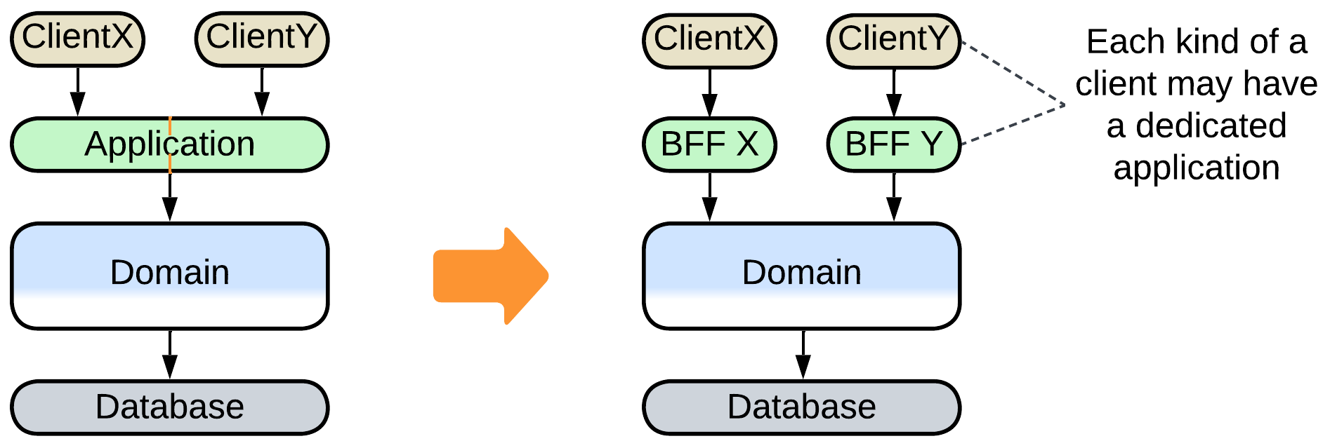 - The orchestration layer may be split into Backends for Frontends to match the individual needs of several kinds of clients.
