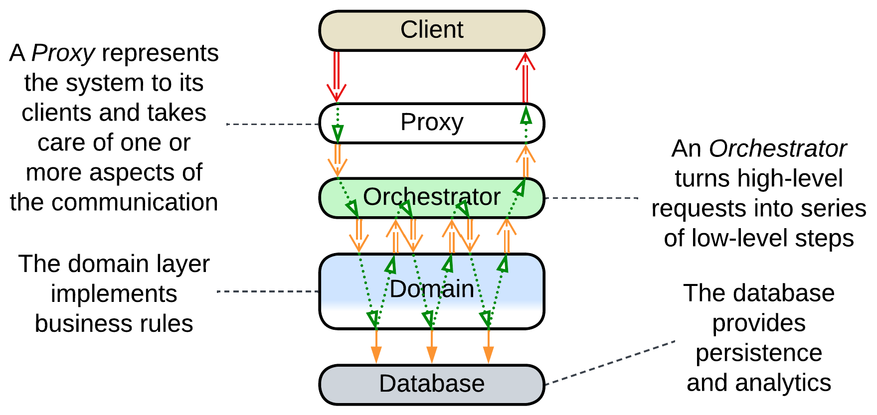 - A layer often serves as a Proxy, Orchestrator, and/or (Shared) Repository.
