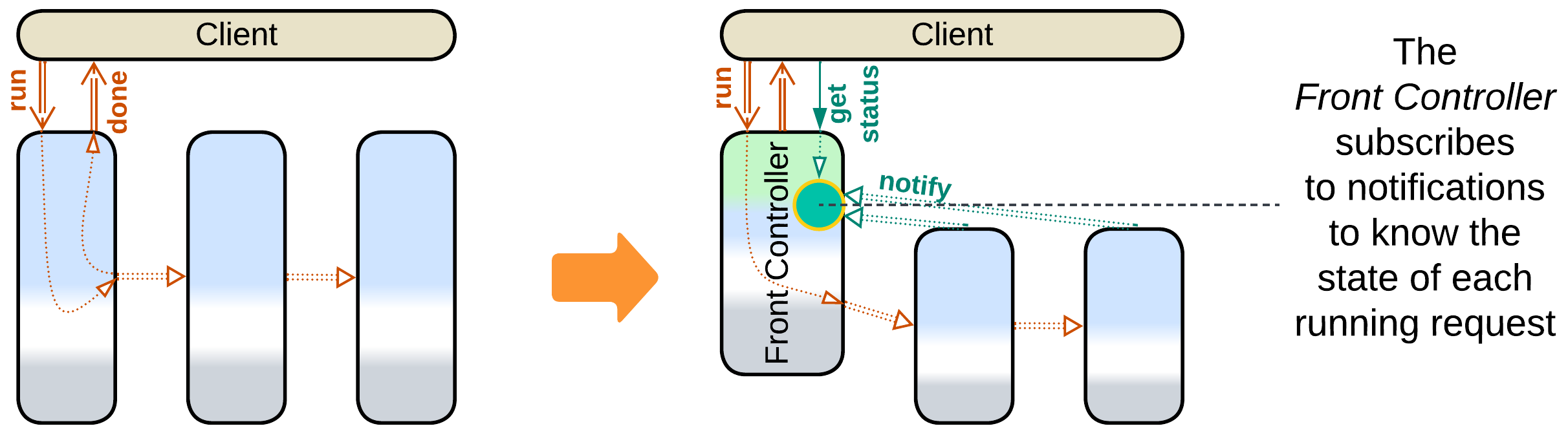 - The first service of the Pipeline can be promoted to a Front Controller [SAHP] which tracks the status updates for every request it handles.