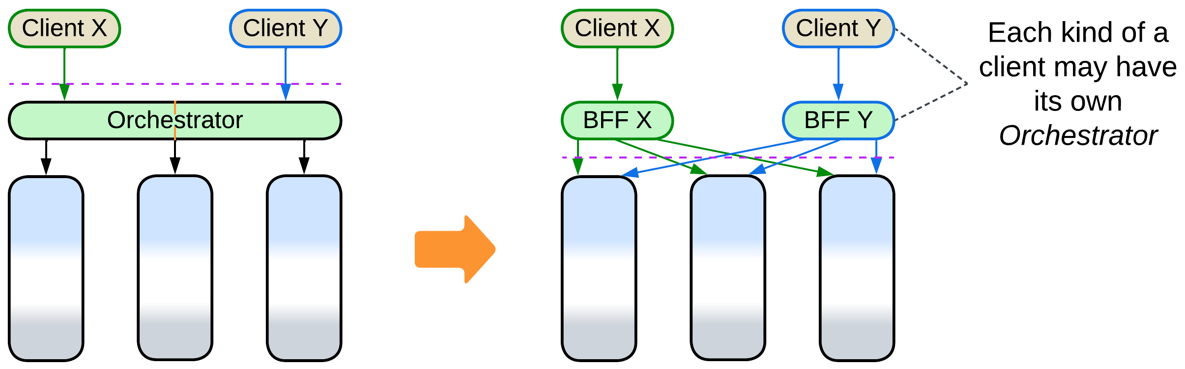 - Subdivide the Orchestrator by the type of client, forming Backends for Frontends.