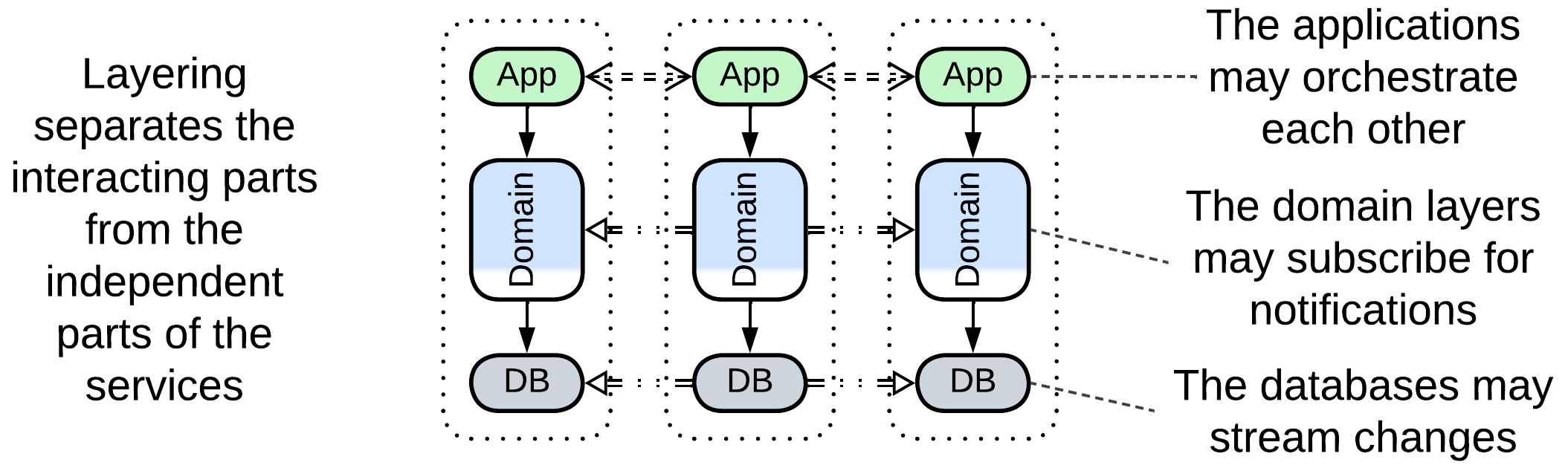 Layered Services is an umbrella metapattern that highlights implementation details of Services, Pipeline, or Monolith.